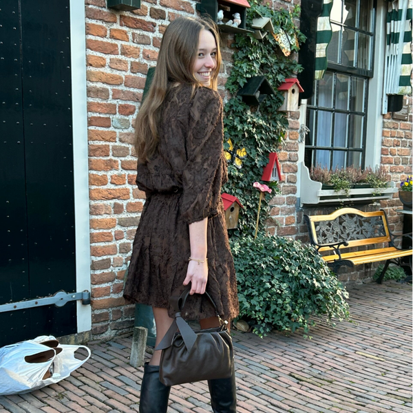 Trend kleur bruin tasje, met een strik als detail! Super leuk en net even anders:)